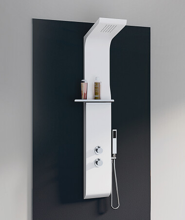 La colonne de douche : Cet élément essentiel regroupe l’ensemble des équipements de robinetterie : colonne, douche de tête, douchette à main et mitigeur. Pratique, on peut opter pour une colonne de douche thermostatique pour encore plus de confort.