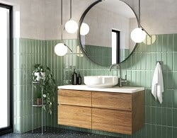 En outre, sachez que les miroirs reflètent la lumière et offrent une sensation d’espace. N’hésitez pas à en placer astucieusement dans votre salle de bain.