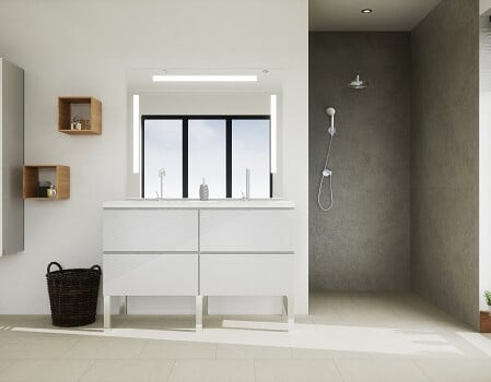 La différence réside essentiellement dans sa faible hauteur, là où une douche à l'italienne est entièrement de plain-pied. Plus facile à installer, il se pose directement sur le revêtement de sol, sans gros travaux et s'avère ainsi plus économique. Il est également du plus bel effet dans une salle d'eau d'inspiration contemporaine, à l'image du receveur extra-plat Kinerock Evo.