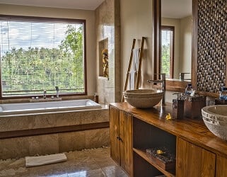 1. Salle de bain exotique : misez sur des matériaux naturels