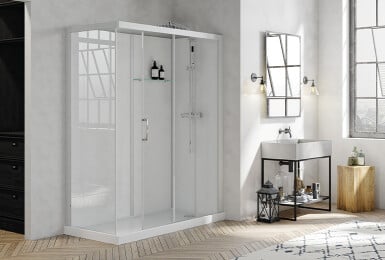 La cabine de douche, complète ou intégrale, est une solution clé en main. Elle est livrée en kit, prête à installer. Elle comprend :