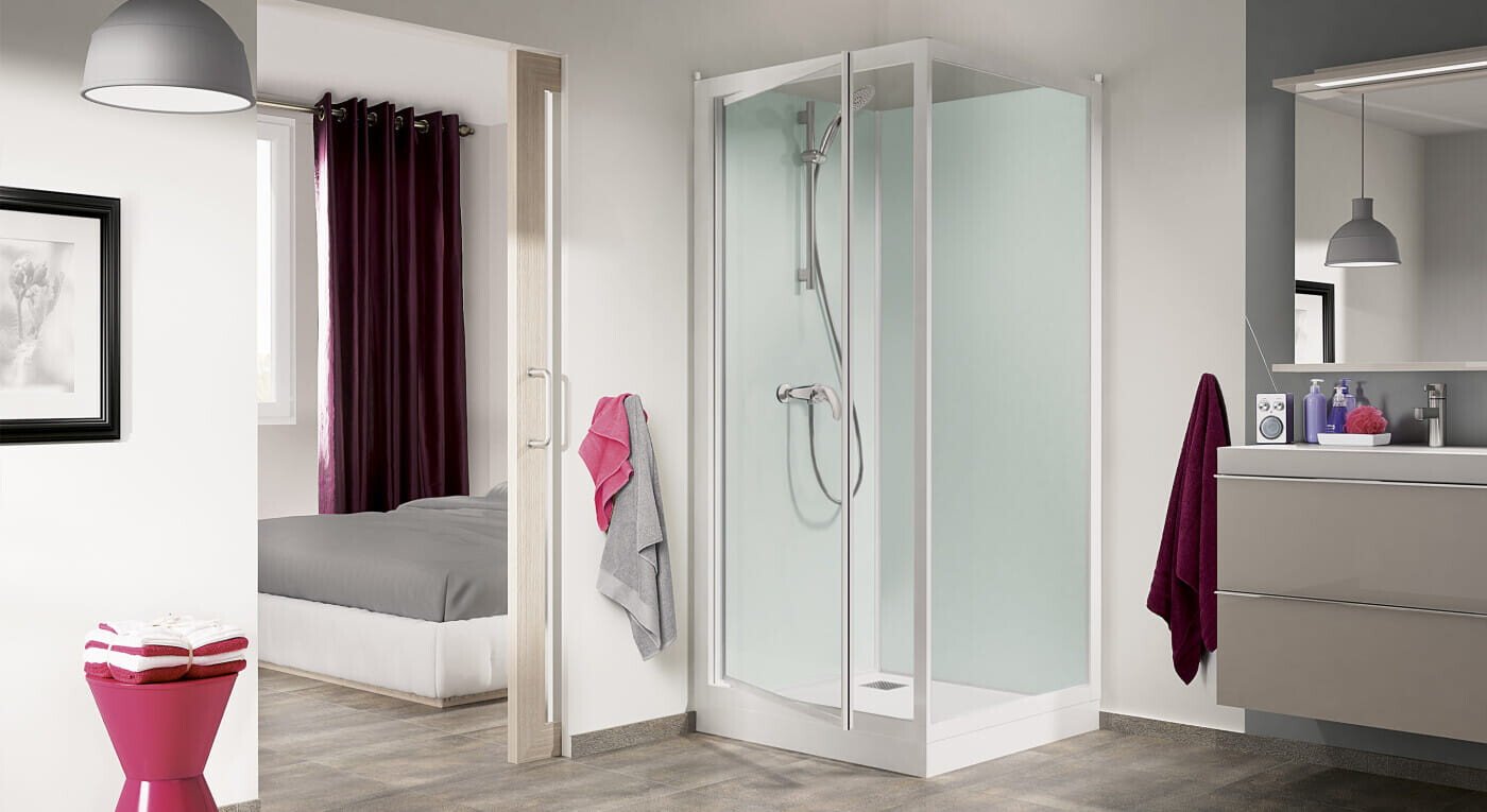Optimisez l’espace dans votre salle de bain avec la cabine de douche Kineprime Glass C en angle. De forme carrée, cette cabine de douche se décline en 3 formats, 70, 80 ou 90 cm de côté. Tout équipée, elle vous offrira un maximum de praticité au quotidien :