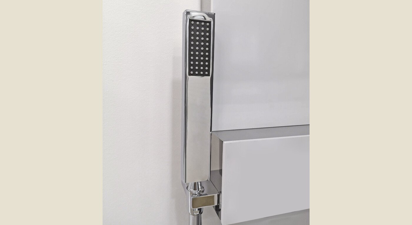Aquachrome est un combiné de douche chromé aux lignes modernes, qui s’intègrera facilement dans toutes les salles de bain.