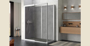 Kinemagic Design soigne l’esthétique. C’est une douche accessible à toute la famille, dotée d’équipements de qualité : des panneaux muraux à motifs ou non, un receveur extra-plat non glissant (PN6) en Biocryl et Biotec, un équipement de robinetterie complet incluant notamment un mitigeur encastré, une douchette à main en laiton avec flexible anti-torsion, une douche pluie et un boîtier de robinetterie en inox poli servant de porte-flacons.
