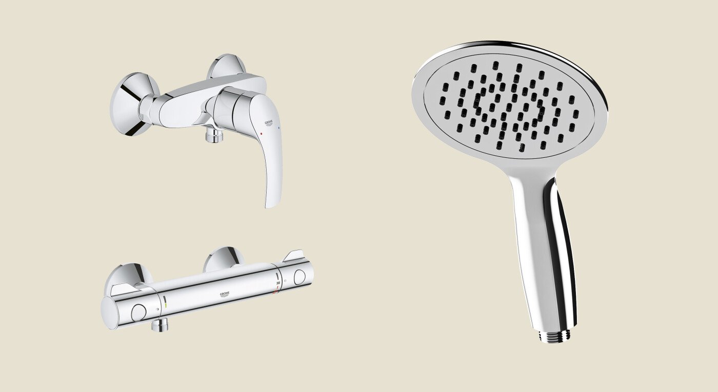 - équipement complet : mitigeur Grohe, douchette ultra plate, barre de douche, flexible d’alimentation et porte-flacons.