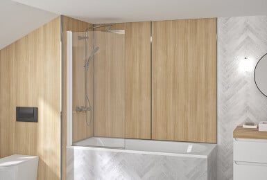 Le pare-baignoire Smart Design Hydra allie la modernité et la simplicité. Il se compose d'une paroi fixe à laquelle peut d'ajouter un volet pivotant pour limiter les éclaboussures. Pratique et esthétique, ce pare-baignoire s’assortira avec toutes les décorations, grâce aux trois finitions de profilés proposés : chromé pour un style intemporel, noir pour un esprit industriel, ou encore blanc pour une ambiance scandinave. La paroi vitrée est également proposée en 2 finitions : verre transparent, ou verre cosmos pour un peu plus d'intimité.