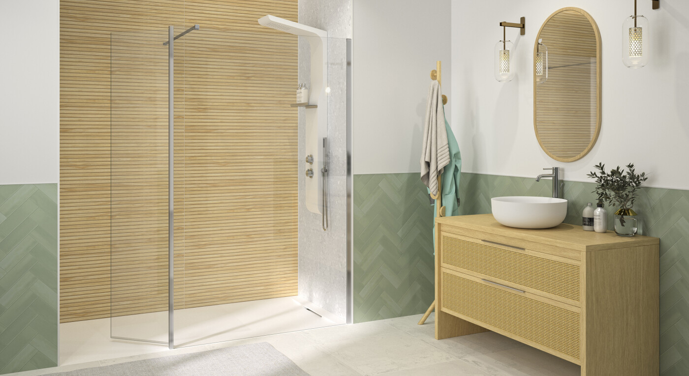 Solo 6 est une paroi de douche fixe qui permet de créer un espace douche ouvert dans votre salle de bain, de 70 à 140 cm de large.