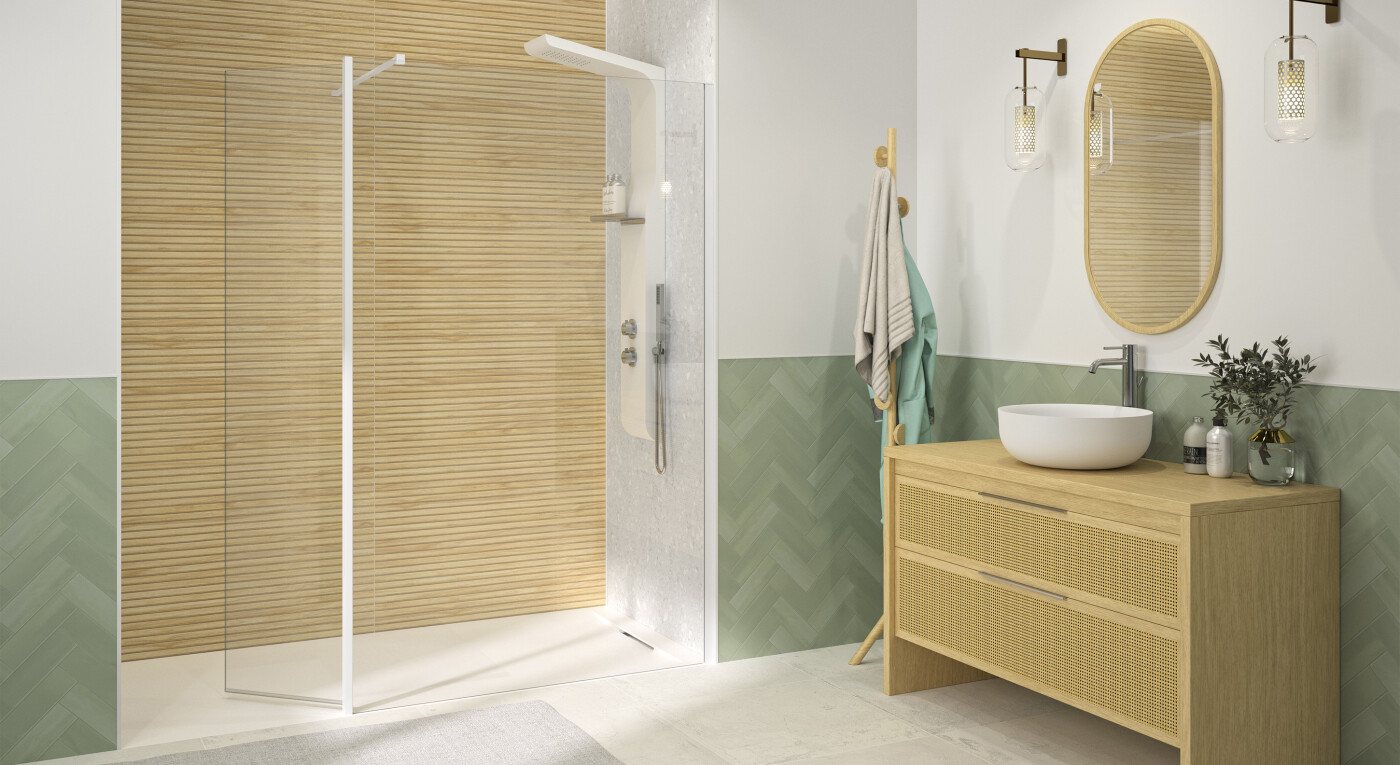 Disponible avec profilés en aluminium blanc mat ou chromé et en verre transparent, cette paroi s’intègrera facilement dans tout type de salle de bain.