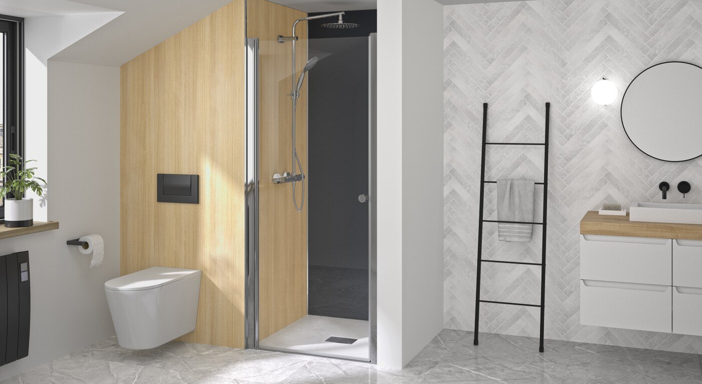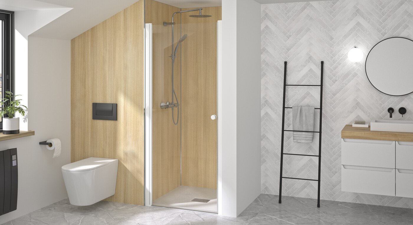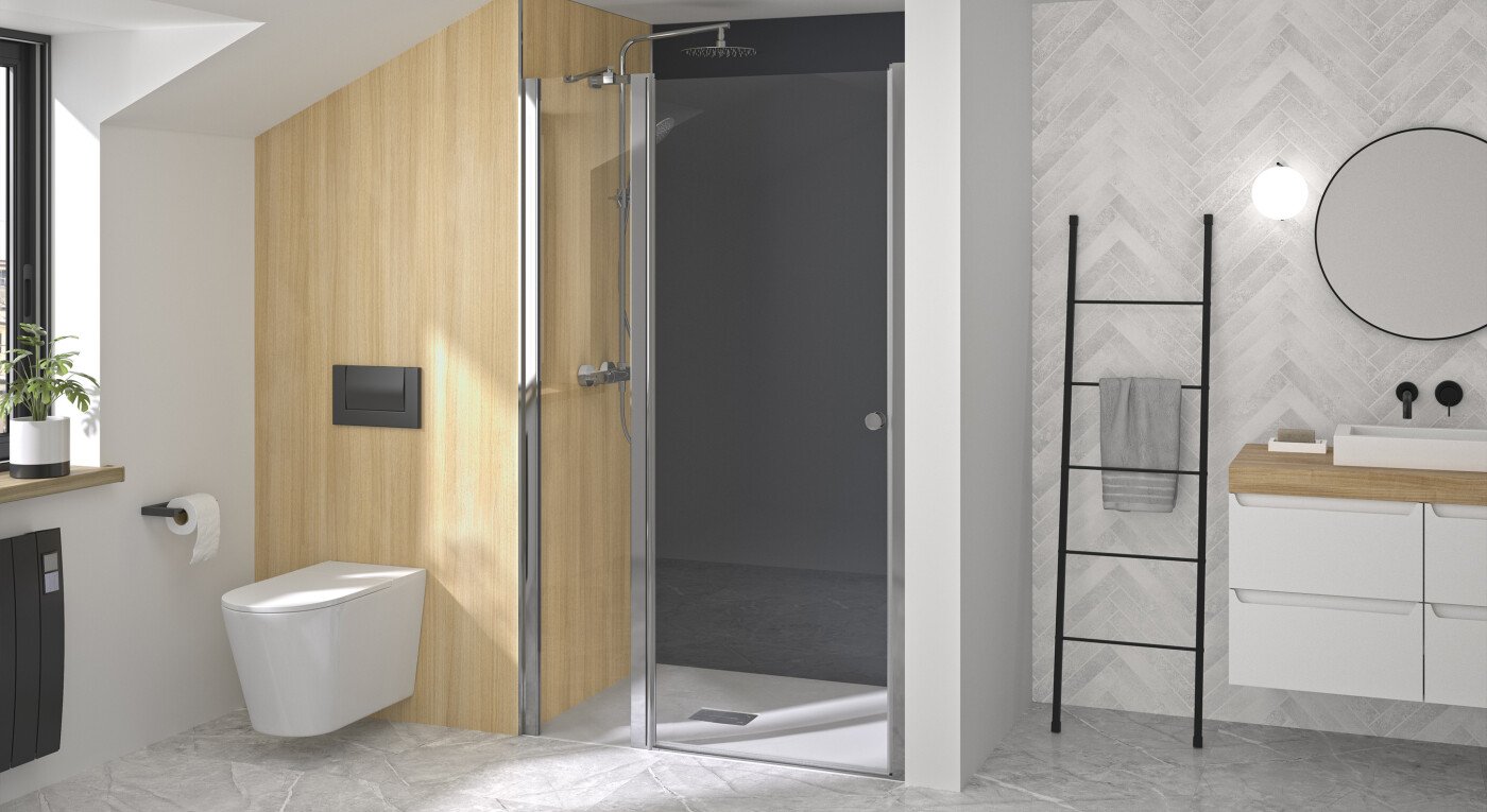 Smart Express P sans seuil est une paroi pivotante pour douche en niche, elle s’ouvre à 180° vers l’intérieur et l’extérieur pour laisser une largeur de passage optimisée. Sans seuil, elle facilite l'accès à la douche et son design se trouve plus épuré.