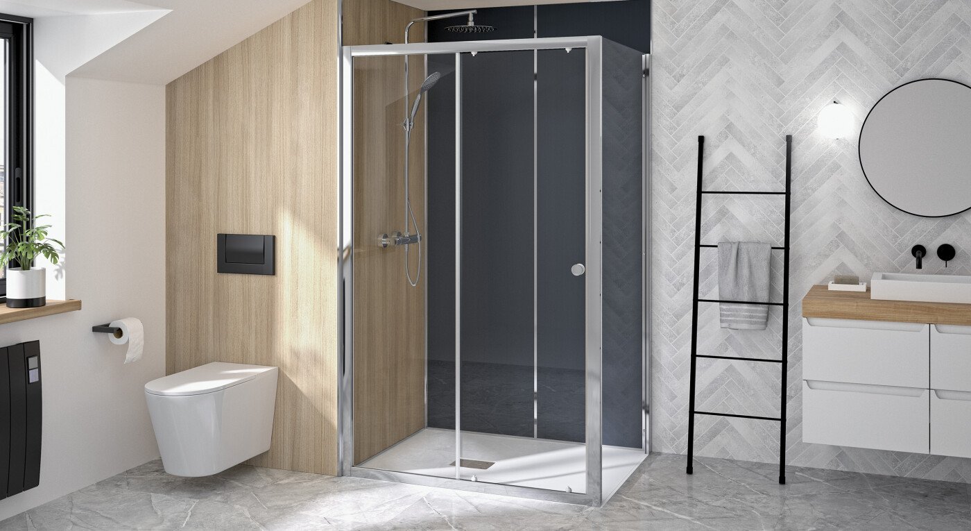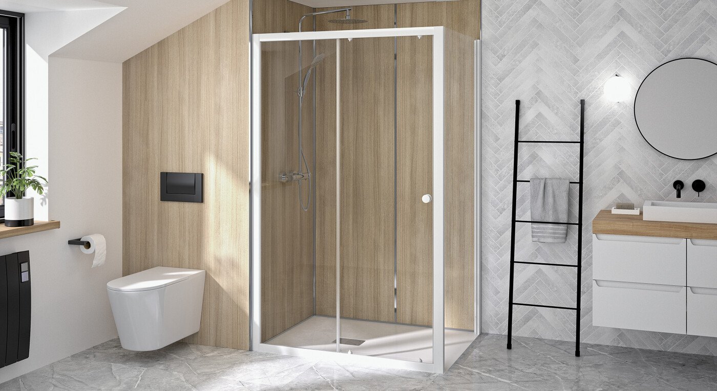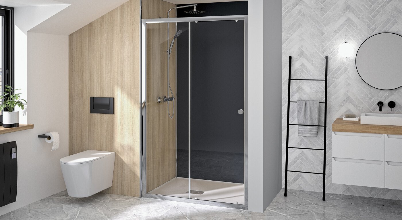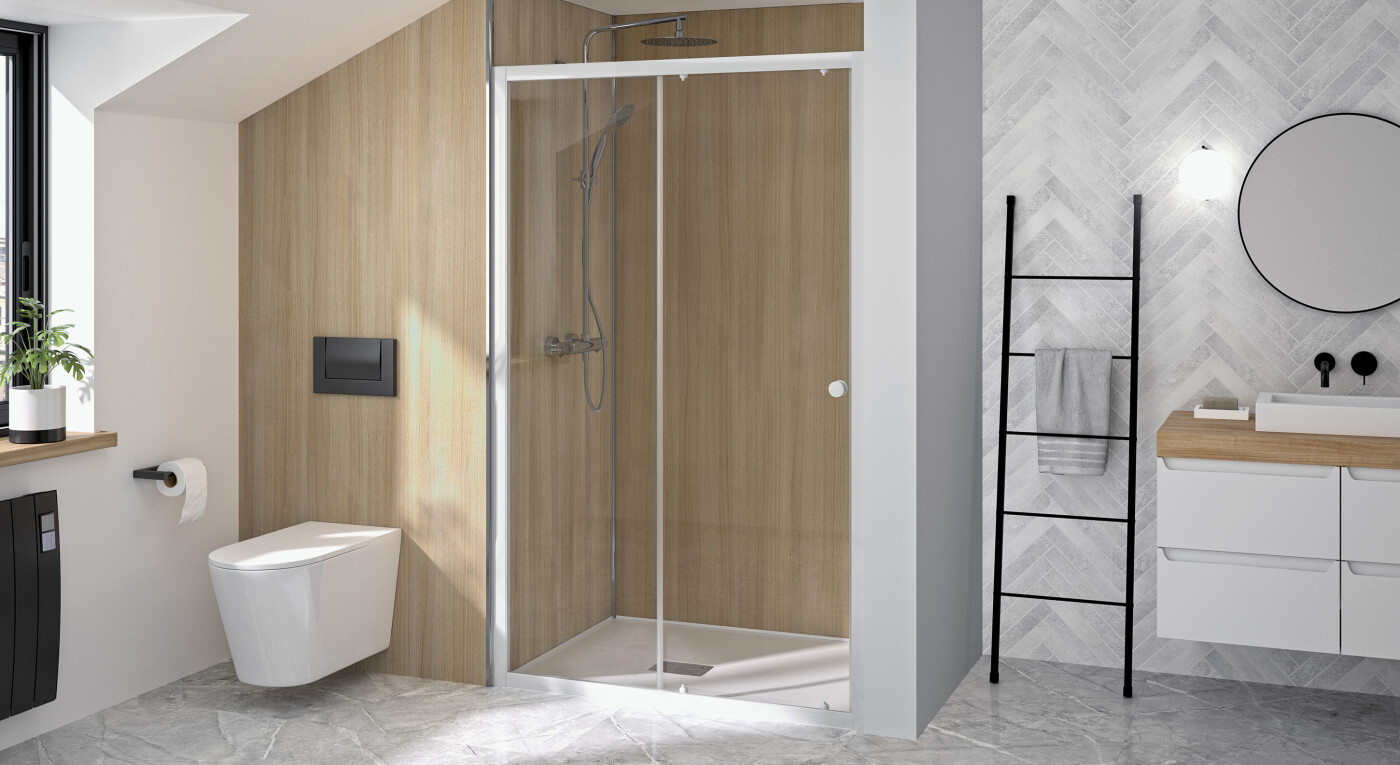 Dotée d’un verre transparent, Supra C se décline en plusieurs largeurs, de 100 à 140 cm et 2 finitions de profilés, blanc ou chromé.