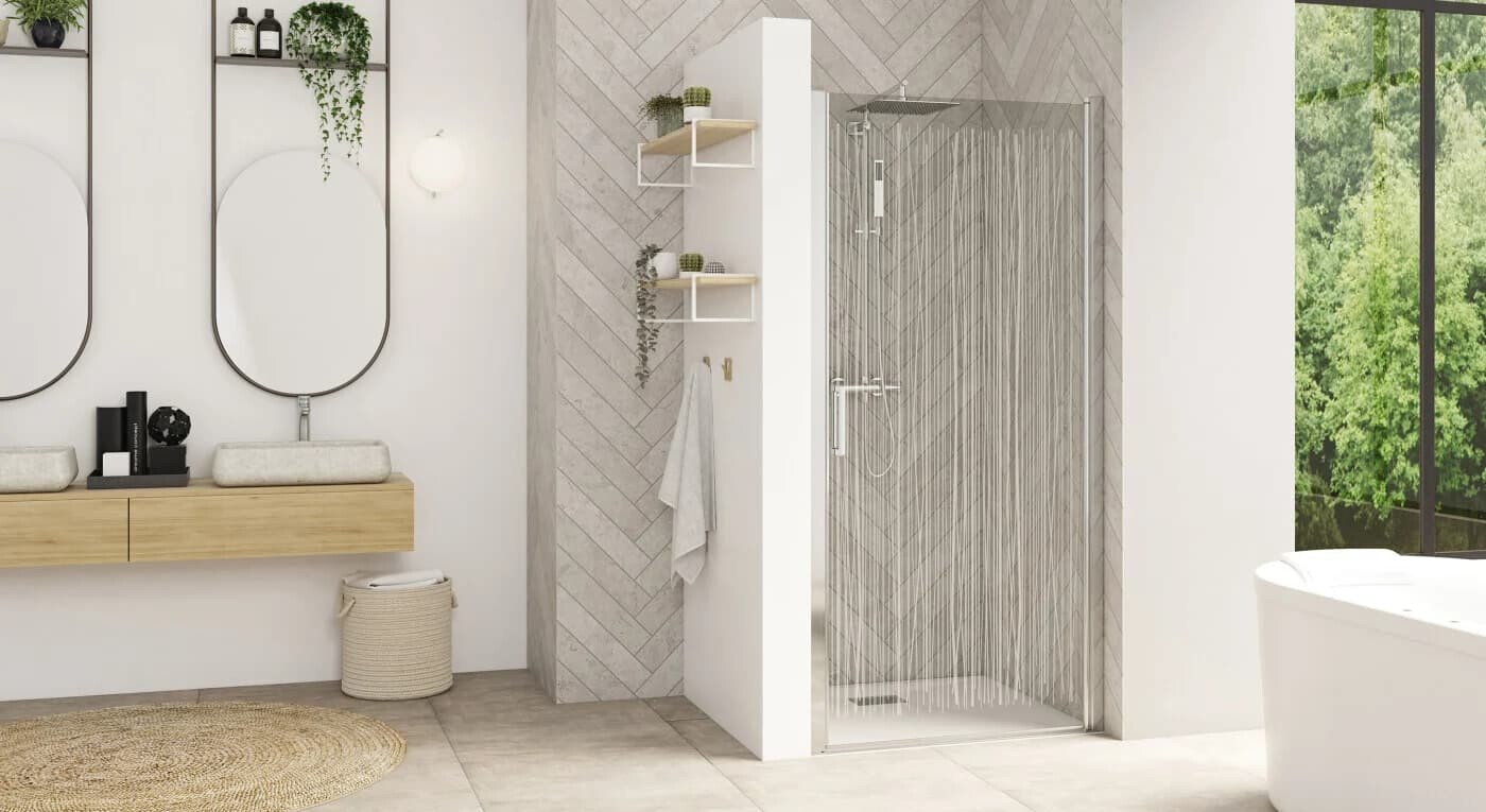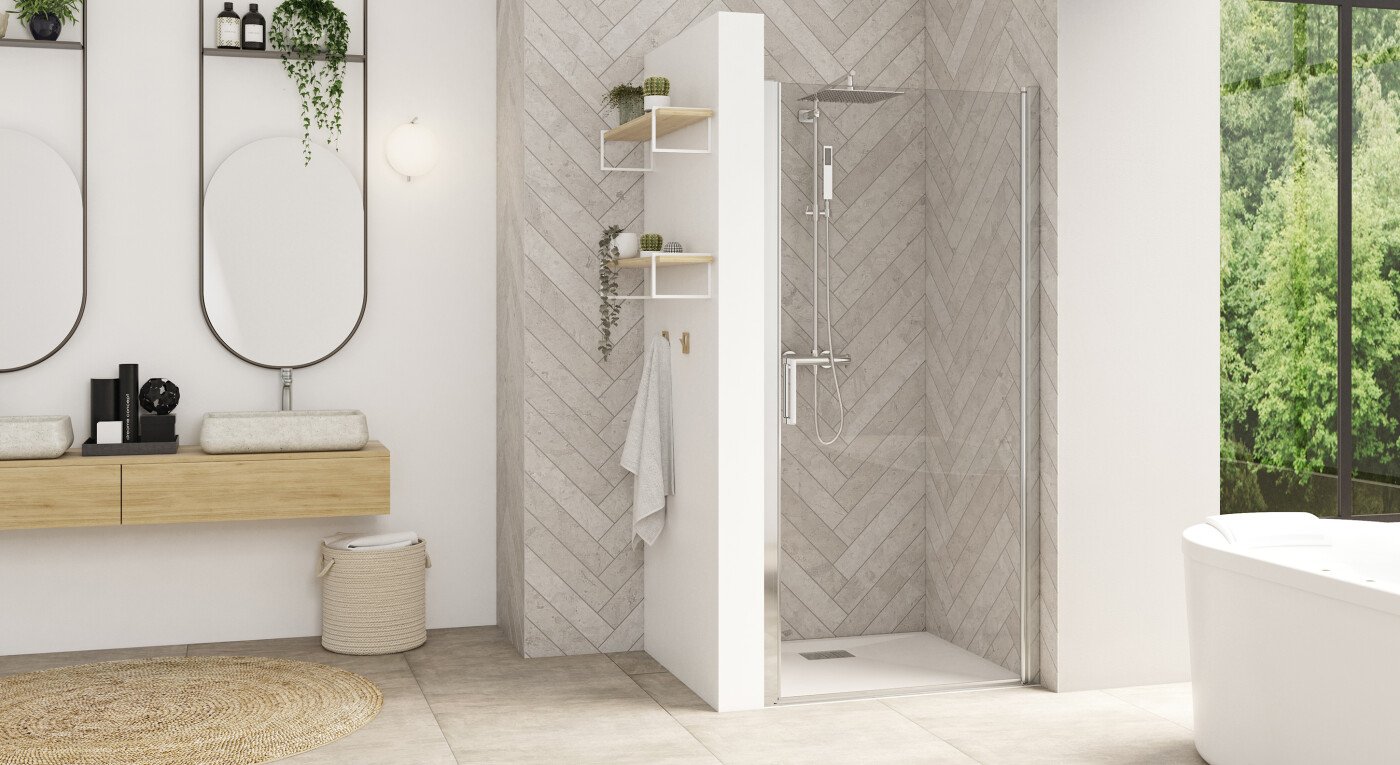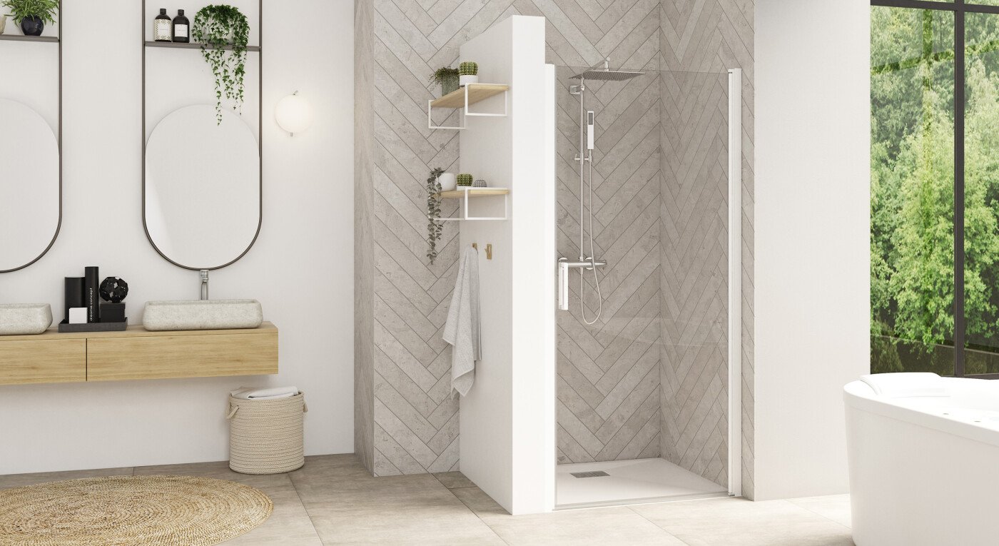 Smart Design P sans seuil est une porte pivotante pour douche en niche (entre 3 murs). Sans seuil, cette paroi de douche pivote à 180° vers l’intérieur ou l’extérieur pour laisser une largeur de passage maximale. Elle est donc particulièrement adaptée dans le cadre de l’aménagement d’une salle de bain pour senior ou personne à mobilité réduite.