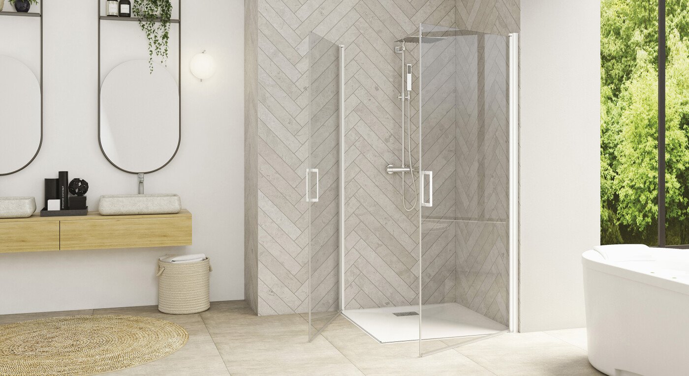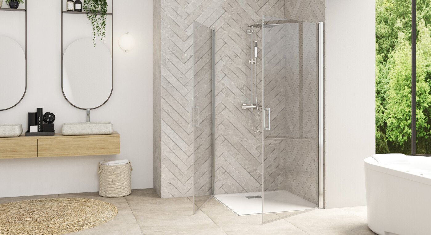 Smart Design A/P sans seuil est une paroi de douche sans seuil qui offre une très grande largeur d’accès avec ses 2 portes pivotantes en angle. Grâce au pivotement intérieur/extérieur à 180° des 2 portes, vous pouvez ouvrir totalement votre espace douche, pour plus de confort au quotidien.