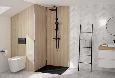 Cette paroi est idéale pour une salle de bain à petit budget, dans une location par exemple. D’une hauteur de 190 cm, elle bénéficie de plusieurs déclinaisons de taille et de design, pour s’adapter à toutes les configurations et les styles de salle de bain :