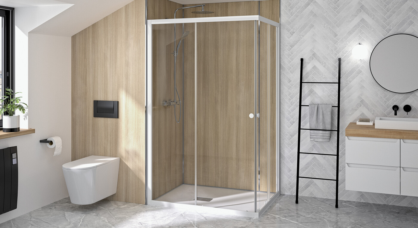 Supra A est une paroi de douche avec accès d'angle coulissant qui offre une belle largeur de passage, tout en limitant l’encombrement de votre douche.