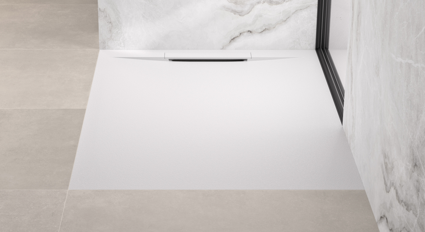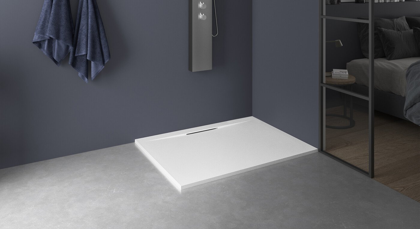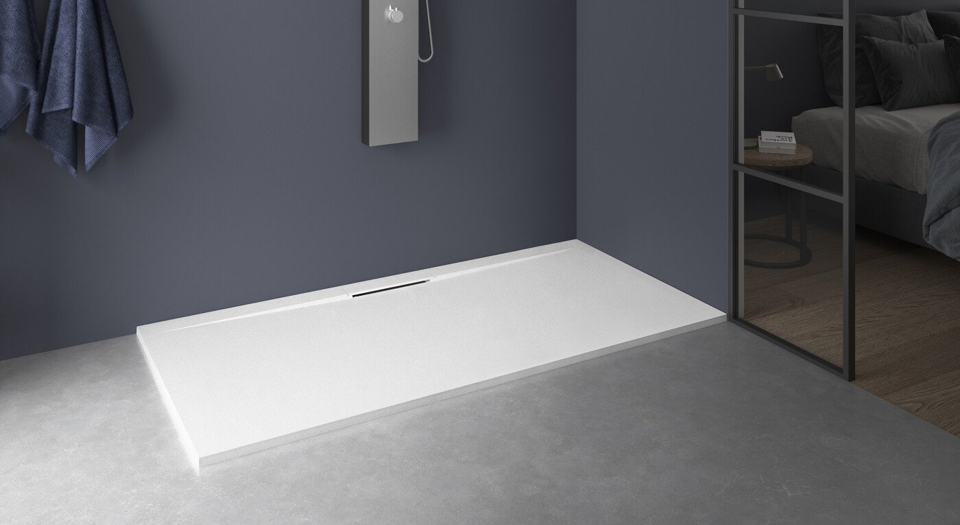 Faites entrer l’élégance dans votre salle de bain avec le receveur de douche Kineline. Conçu en Biolex, un matériau composite robuste à base de 80% de charge minérale, Kineline bénéficie d’un design très contemporain, avec un aspect granit original.
