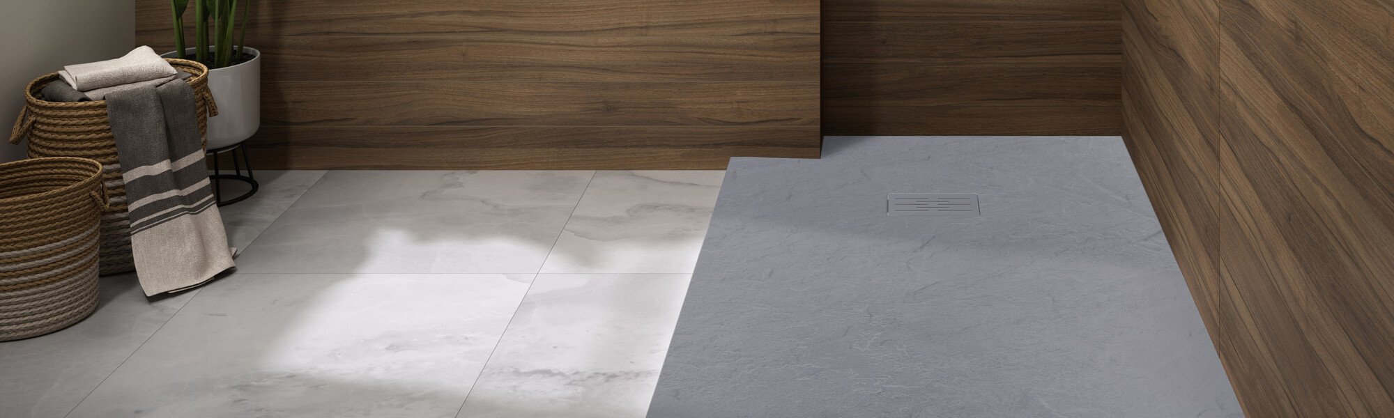 Kinerock Evo peut s’installer avec ou sans décaissement, le décaissement total offrant la possibilité d’une douche de plain-pied, type douche à l’italienne.