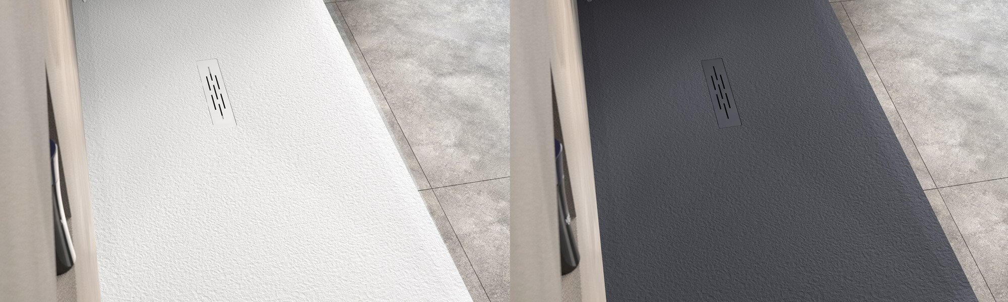 Chez Kinedo, nous utilisons des matériaux de synthèse pour la fabrication de nos receveurs de douche extraplat. Nos produits offrent une grande solidité tout en offrant une variété de finitions : effet de texture, couleur (blanc, gris anthracite, gris clair, sable, etc.).